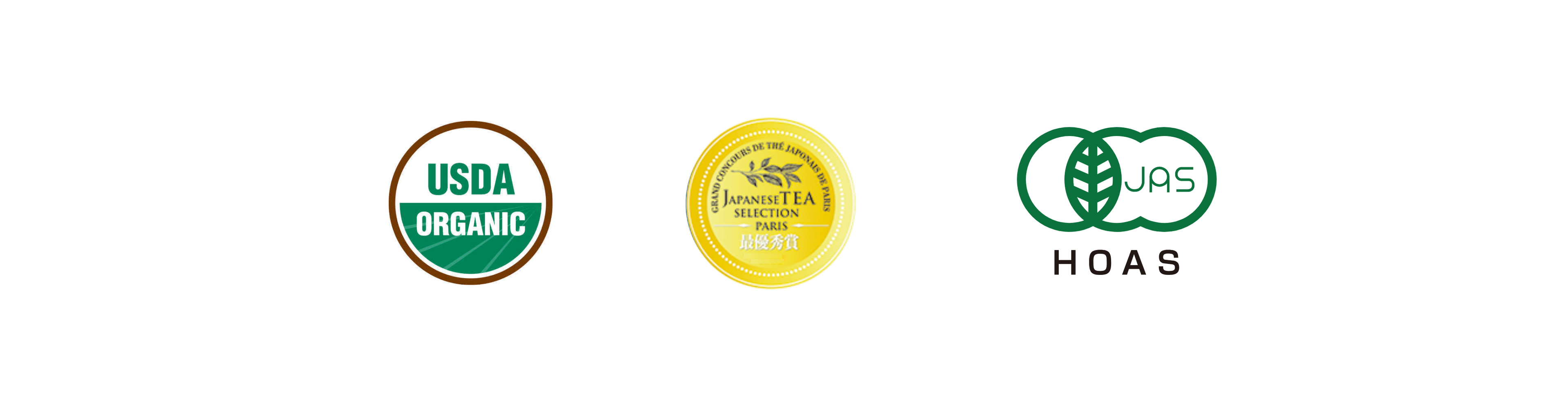 Our teas have been recognized by the Japanese Tea Selection Paris and proudly hold USDA Organic certification, JAS Organic certification (sanctioned by Japan’s Ministry of Agriculture, Forestry and Fisheries), and the exclusive HOAS certification from the Hyogo Prefecture Organic Agriculture Society.